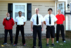 - Parking Attendant – Red logoed polo, khaki pants, black shoes